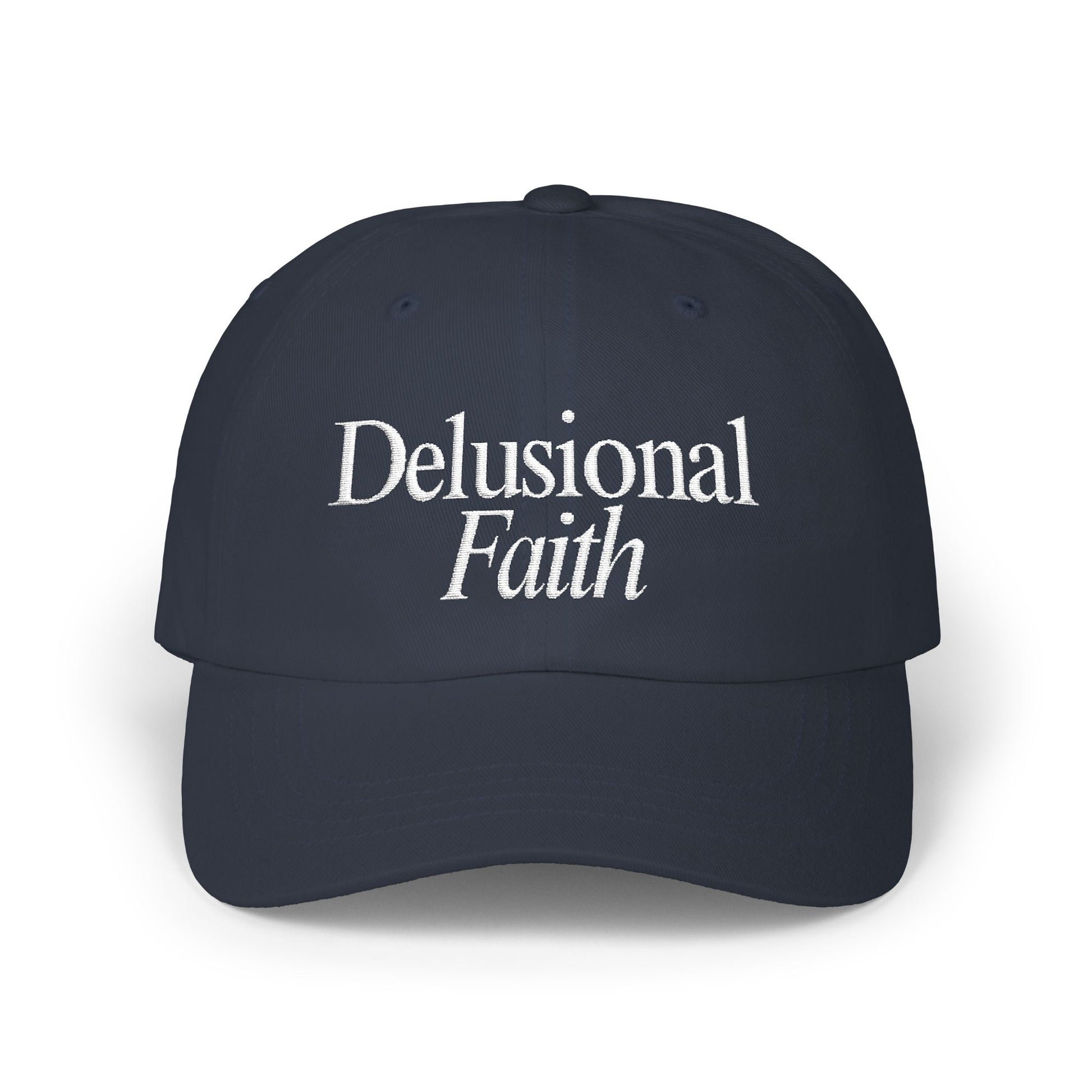 Delusional Faith Navy Blue Dad Cap – Faith Based Streetwear Hat